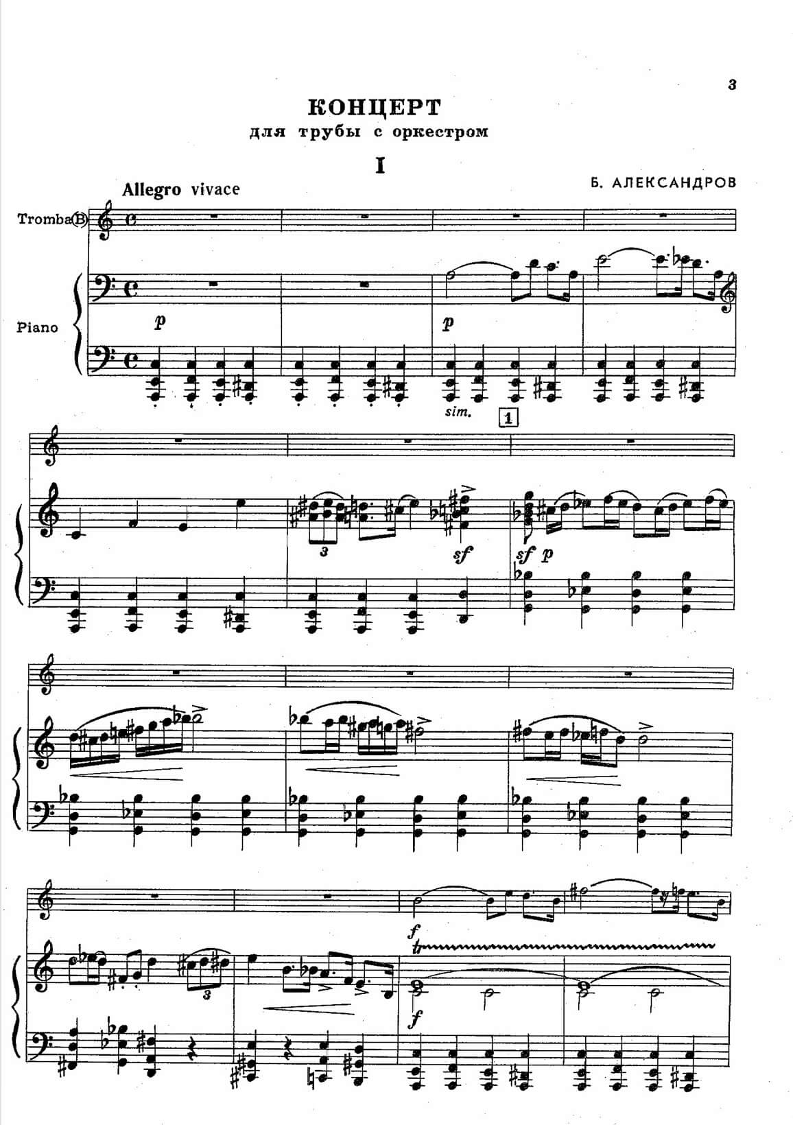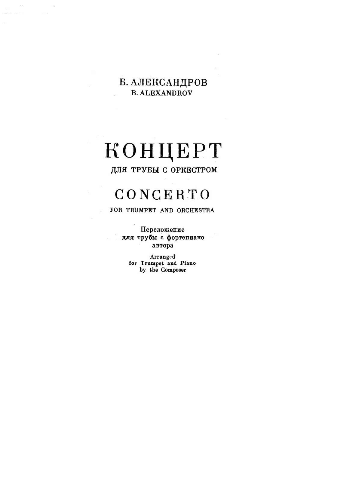 Alexandrov, Boris Alexandrovich (1905-1994) – Concerto for trumpet Bb and orchestra in three movements