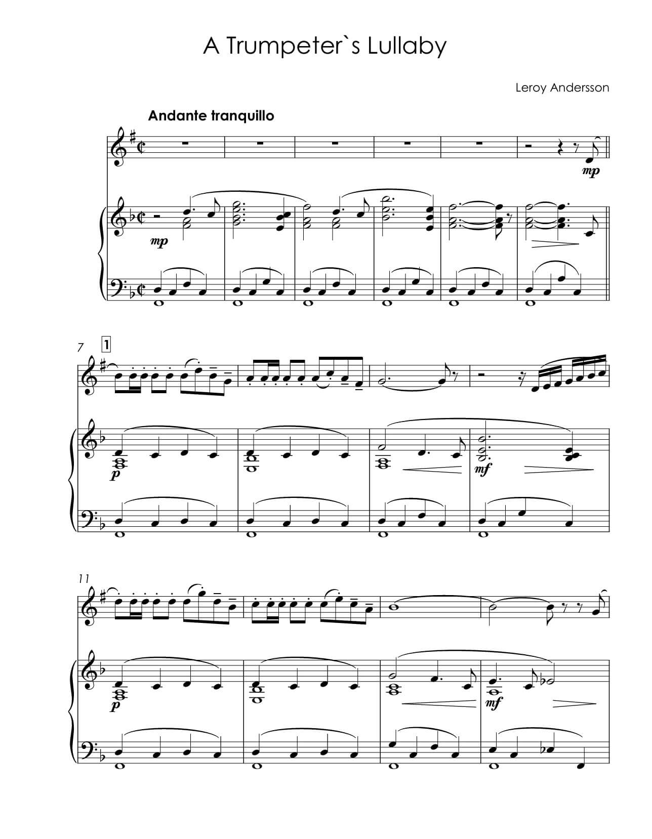 Anderson, Leroy – A Trumpeter’s Lullaby for trumpet Bb & piano
