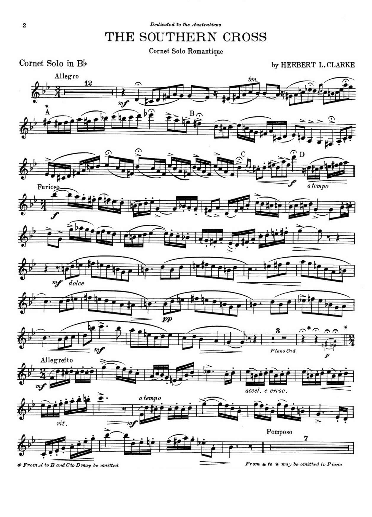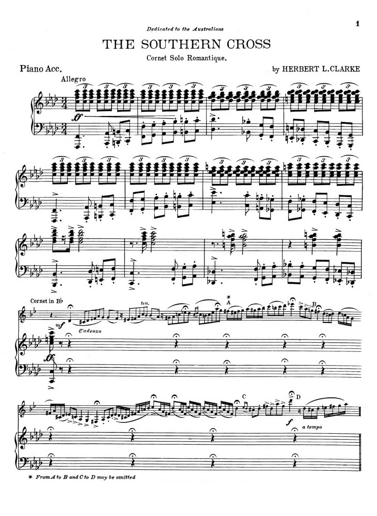Reminder: Our web site is sells digital music notes that you can download and print immediately after purchase; we do not sell or ship any physical products. All musical and literary materials are provided solely for personal use. Commercial exploitation is prohibited under international copyright law. Works inadvertently included in the library will be promptly removed upon request of the copyright holders.Herbert L. Clarke (1867 –1945) – The Southern cross for trumpet Bb and piano