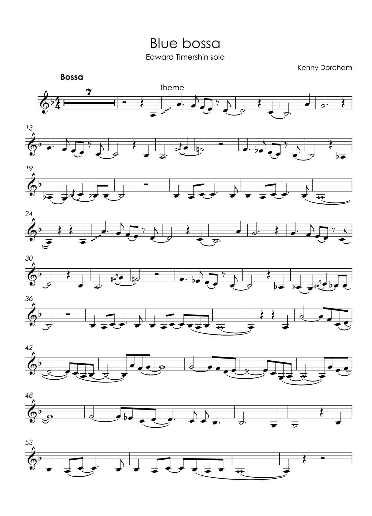 Dorcham, Kenny – “Blue Bossa” for trumpet solo transcription (easy level)
