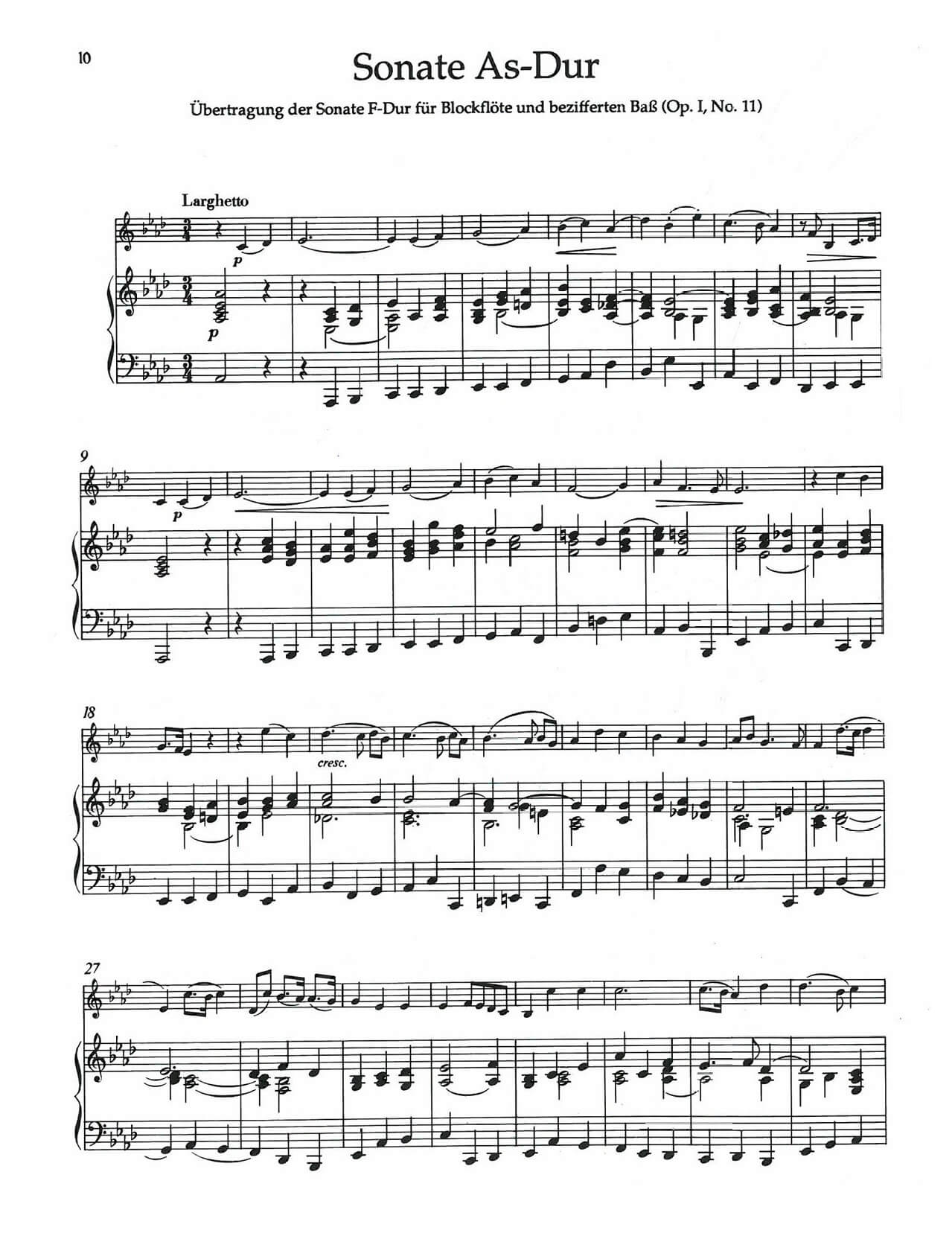 - Sonate As-dur in 4 movt. ( orig. of the Sonata in F major for flute and figured bass HWV. 369 (Op.1, No1), 171