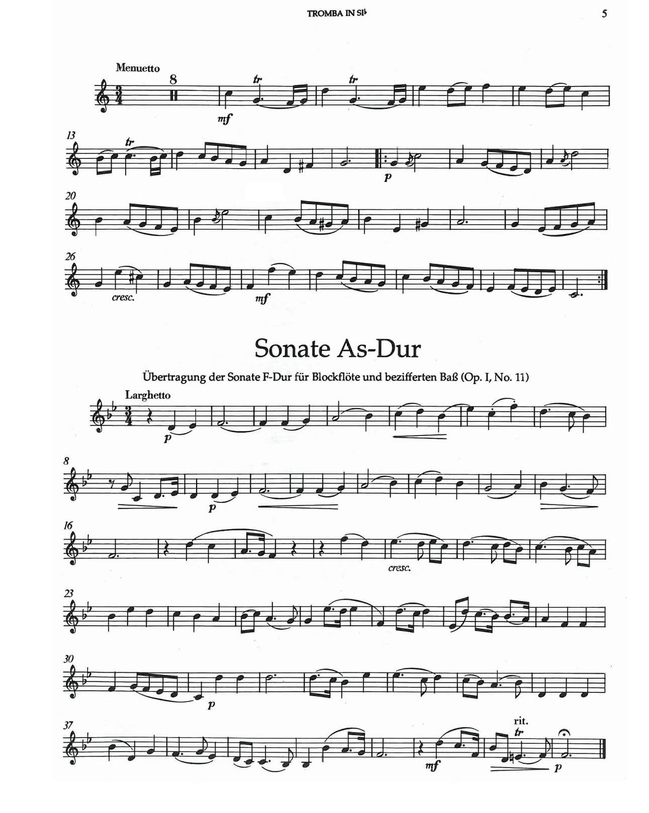 - Sonate B-dur in 5 movt.( orig. of the Sonata in G major for flute and figured bass HWV 363b (Op.1, No.5)
