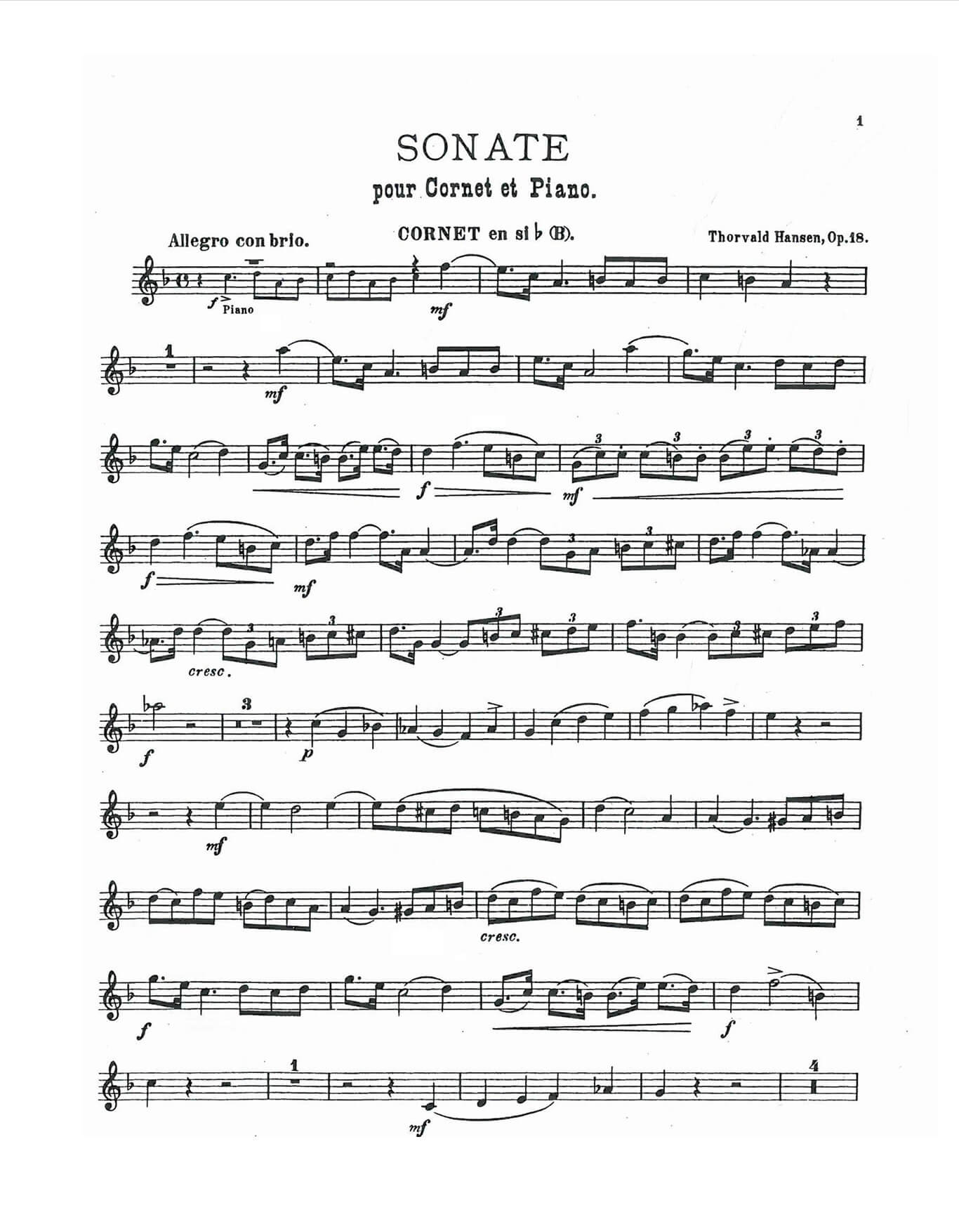 Hansen, Thorvald – Sonata in E flat major op.18 for cornet Bb and piano (1903).