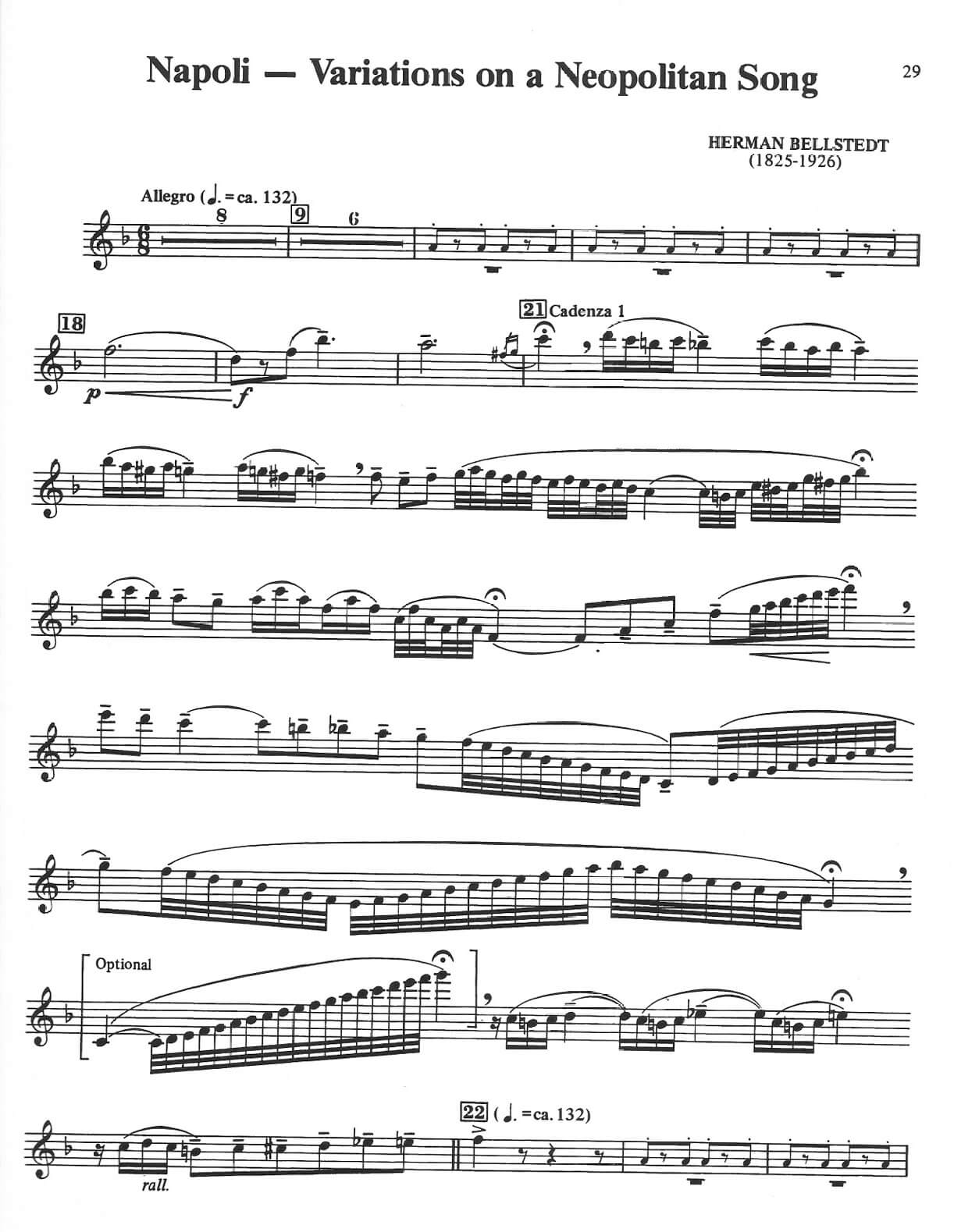 Reminder: Our web site is sells digital music notes that you can download and print immediately after purchase; we do not sell or ship any physical products. All musical and literary materials are provided solely for personal use. Commercial exploitation is prohibited under international copyright law. Works inadvertently included in the library will be promptly removed upon request of the copyright holders.Hermann Bellstedt (1858 – 1926) – Napoli – Variations on a Neapolitan Song for trumpet Bb and piano