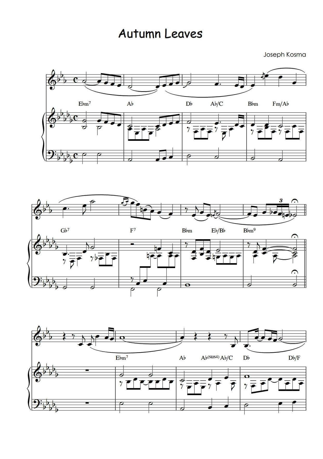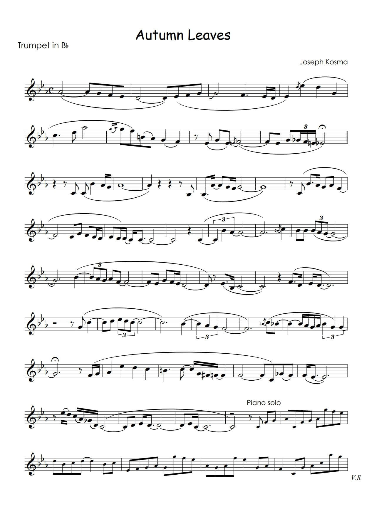 Reminder: Our web site is sells digital music notes that you can download and print immediately after purchase; we do not sell or ship any physical products. All musical and literary materials are provided solely for personal use. Commercial exploitation is prohibited under international copyright law. Works inadvertently included in the library will be promptly removed upon request of the copyright holders.Joseph Kosma (1905 – 1969) – Autumn Leaves (Les Feuilles mortes) Eva Cassidy for trumpet Bb & piano