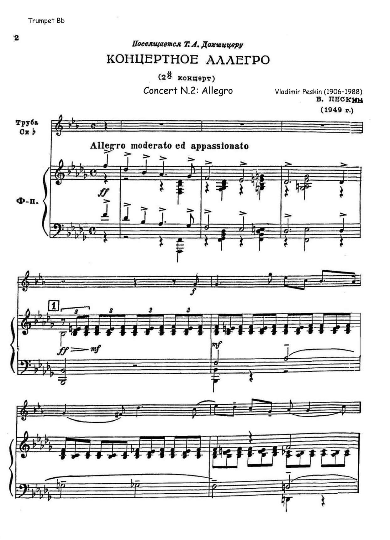Vladimir Peskin (1906-1988) – Concert Allegro (“Concerto No. 2”) for Trumpet Bb and Piano